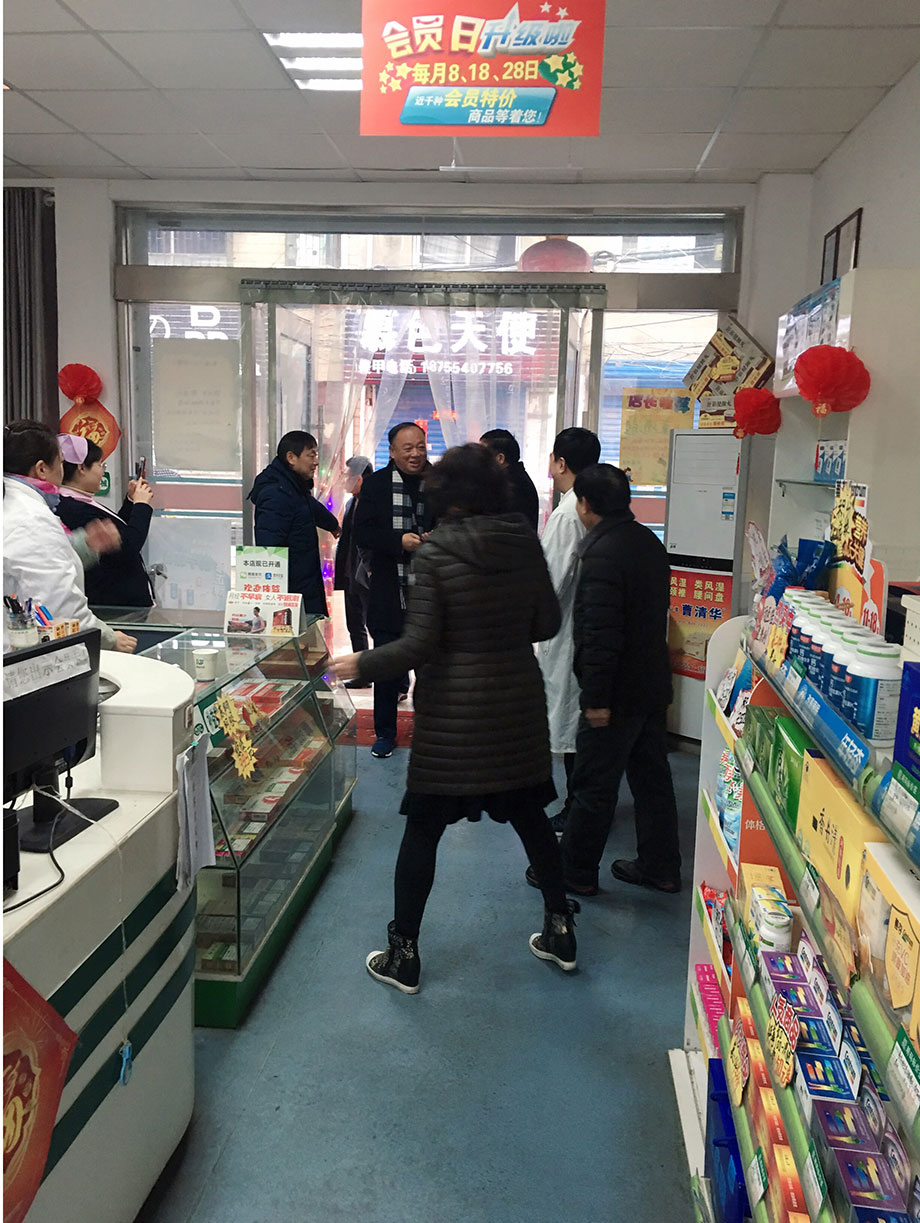 視察中,董事長江鴻方詳細(xì)詢問藥店的經(jīng)營狀況,并對職工辛勤的工作給予肯定。就店內(nèi)美化工作提出具體要求。