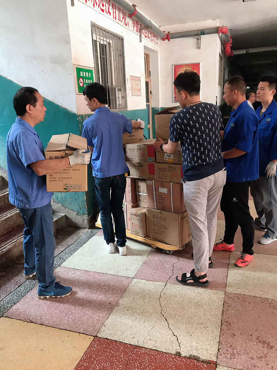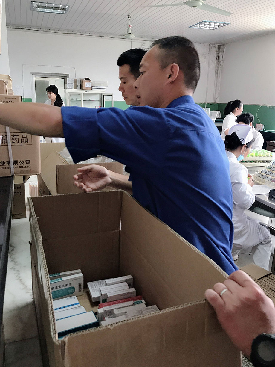 每次藥品全部運(yùn)送到藥材科以后,大家還要和對方老師及時核對藥品,確保藥品的質(zhì)量、數(shù)量、效期、產(chǎn)地、品名、規(guī)格等,確認(rèn)沒有問題才算是配送成功,看著同事們汗流浹背的樣子,真心地為大家點個贊!