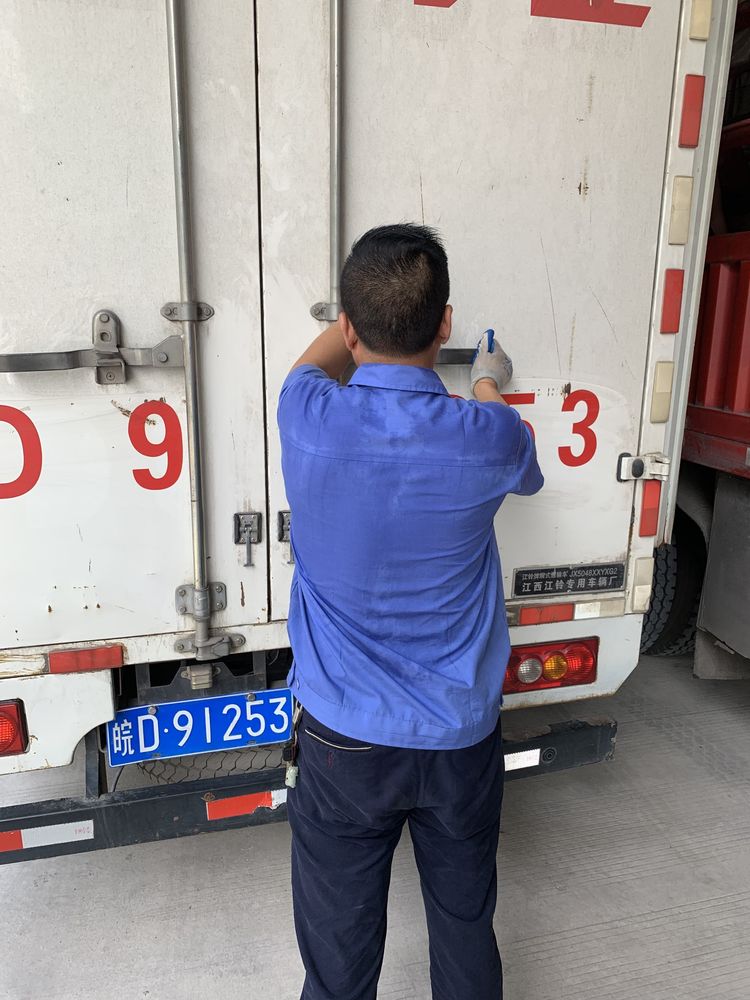 卸完貨把車門關(guān)好,師傅的衣衫已經(jīng)全部濕透。