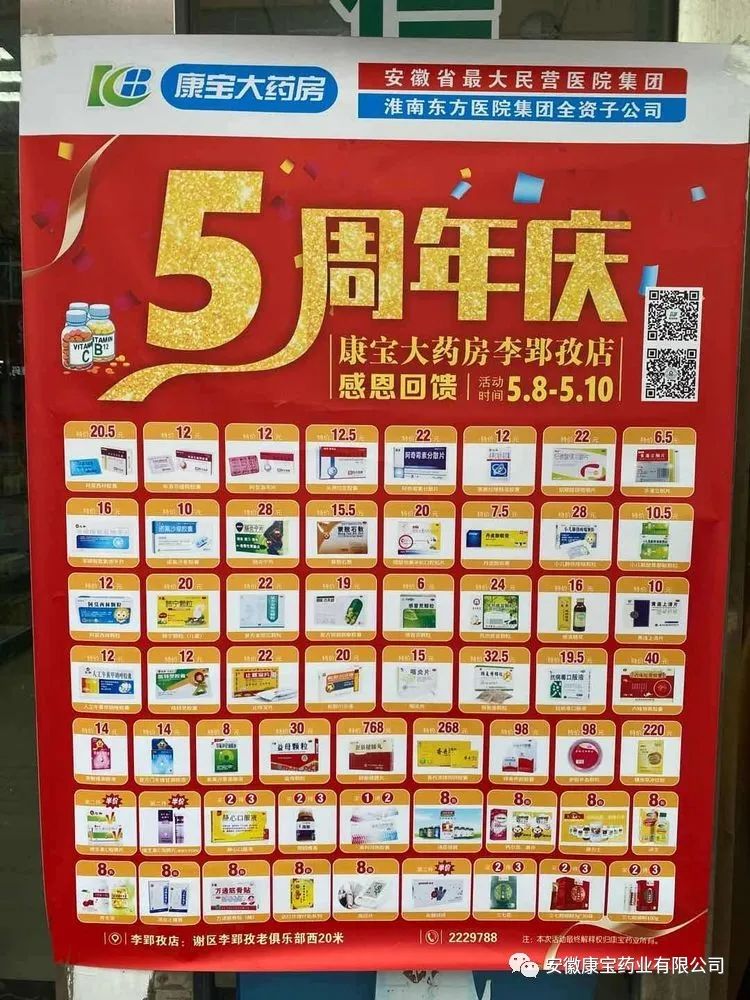 為了回饋廣大群眾,康寶大藥房李郢孜店、九龍崗店推出了感恩回饋活動,藥店工作人員早早張貼了宣傳海報(bào),方便顧客了解價(jià)格、方便購藥。