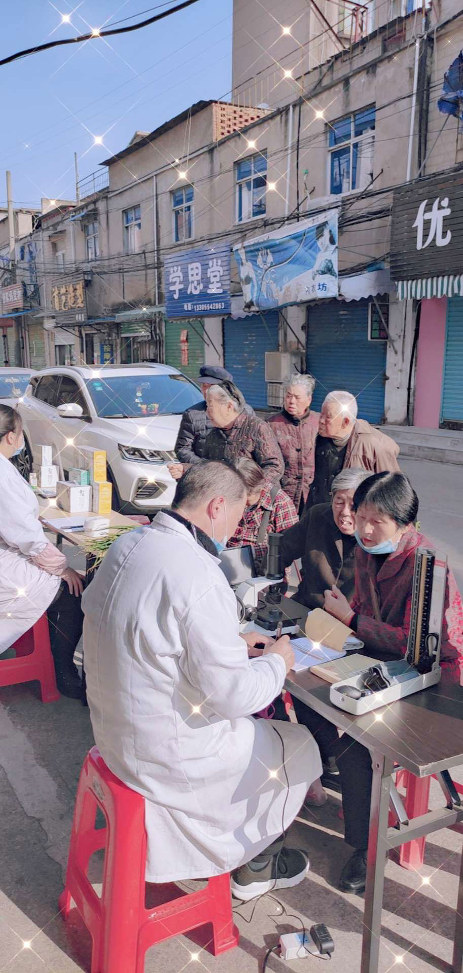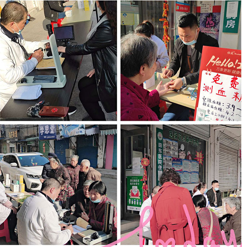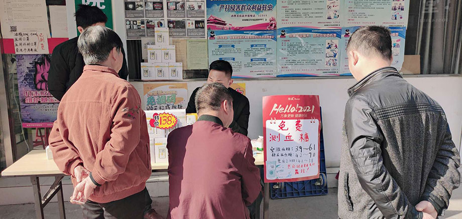 為了回饋新老顧客,藥店免費開展骨密度檢測及血糖、血壓檢測。